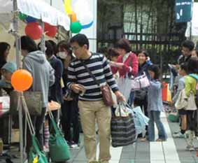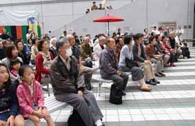 土曜日は、屋外ステージに、多くの方々がお見えになり、綱渡りや江戸踊